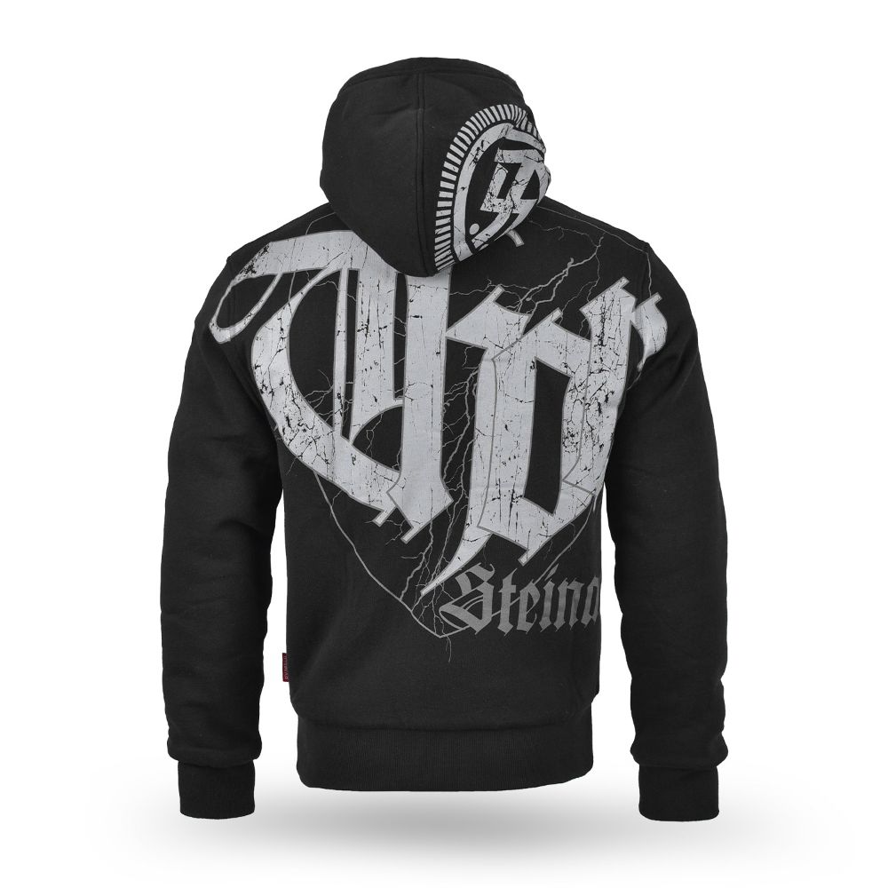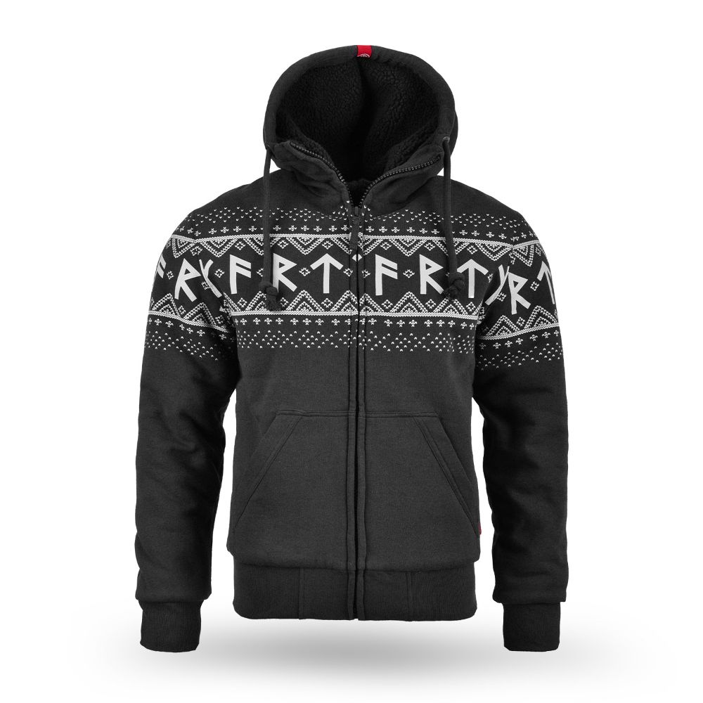 Warm gefütterte Bondedjacke mit Fellimitat und hochschließendem Kragen. Gesticktes Frontlogo; verdeckter Reißverschluss; angesetzte Belege an den Taschen und an der Kapuze; Rückenmotiv bestehend aus einem Druck, der teilweise mit einem Stick umrandet ist. Material: 70 % Baumwolle, 30 Polyester / Futter: 100% Polyester